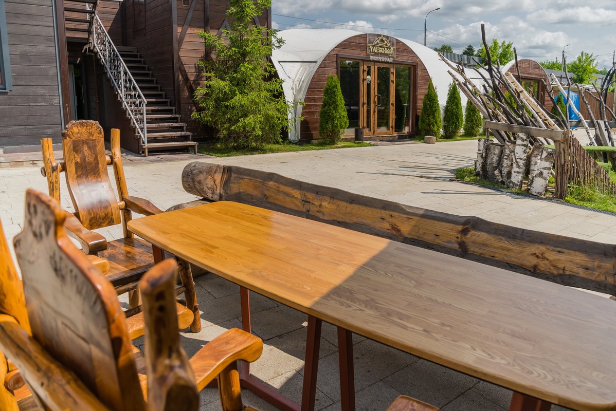 Если за окном стоит тёплая погода, гораздо приятнее находиться не в помещениях, а на улице. И не только чтобы погулять, но и перекусить. Специально для таких случаев у ресторана Таёжный есть своя веранда с выходом на улицу.